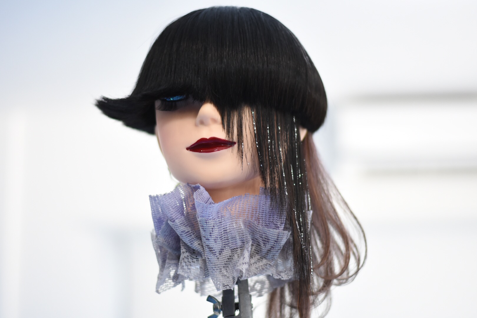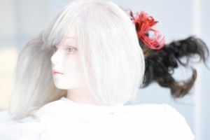 制限時間1時間で、カットとスタイリングをパートナー(ウィッグ)に施す。。